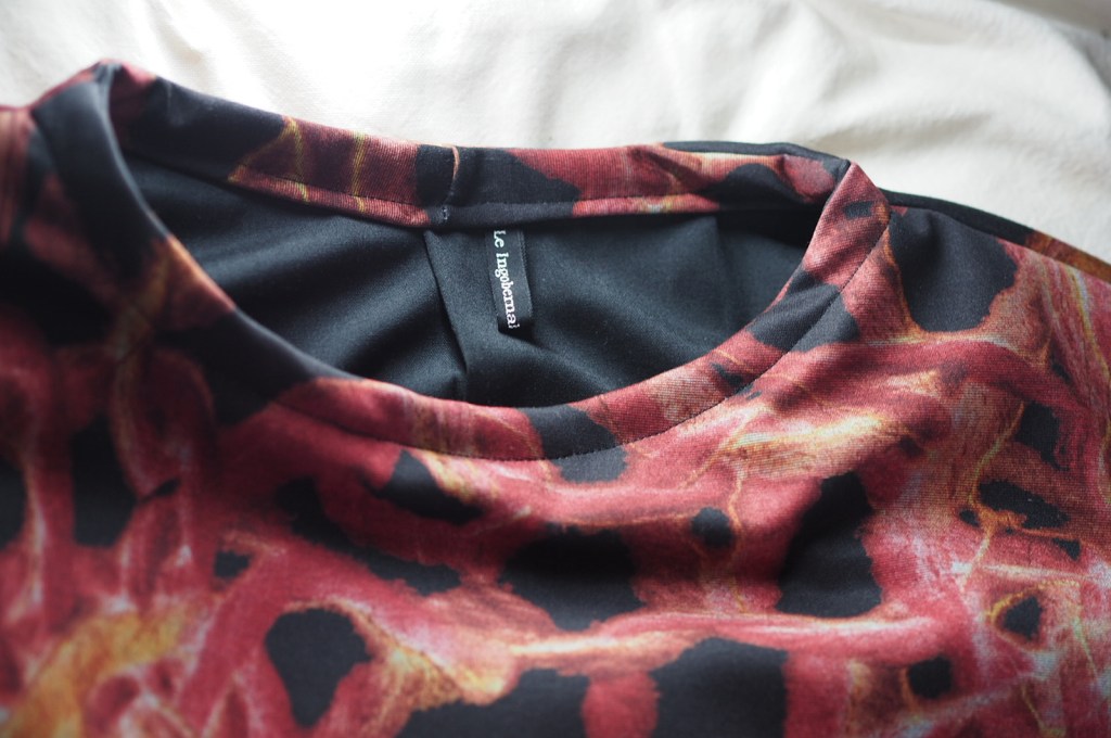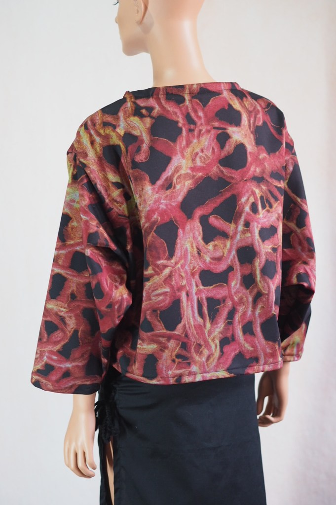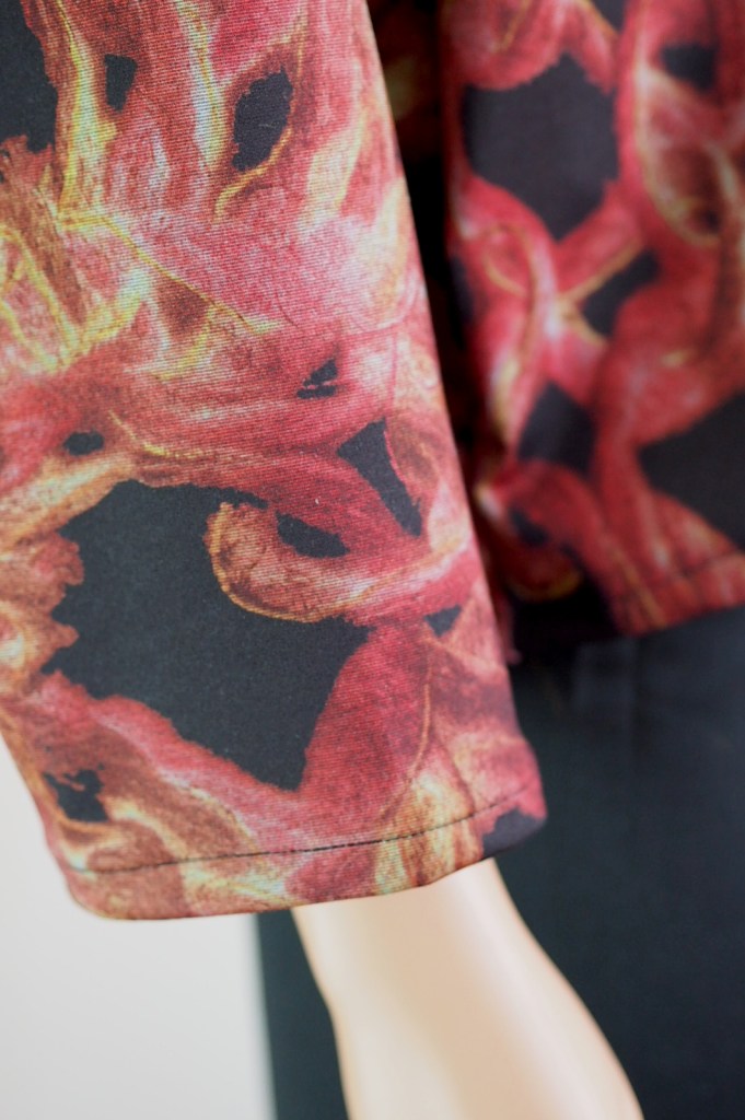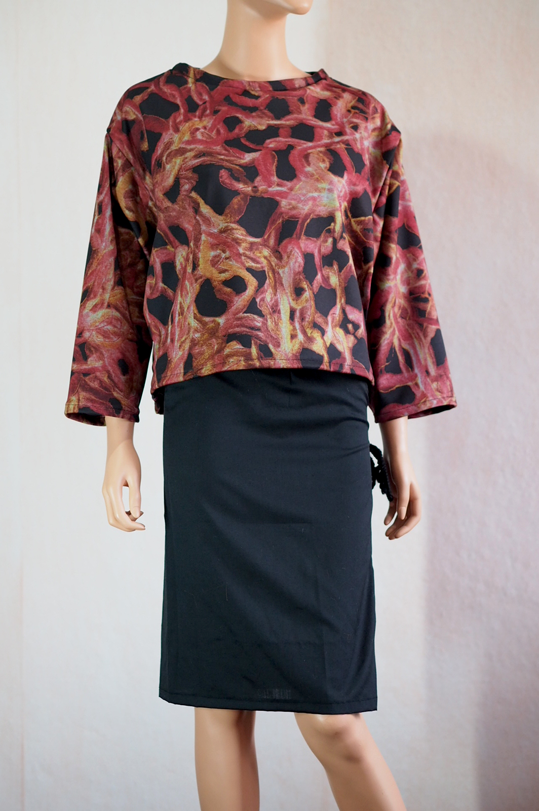 Feurige Verästelungen zieren die vierte Vertreterin meiner langärmeligen Crop-Tops. Das dicke Material und das doppelte Innenleben machen dieses Oberteil schon fast zu einem Sweater.